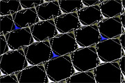 Ein dreidimensionales imaginäres Netzwerk legt sich über die