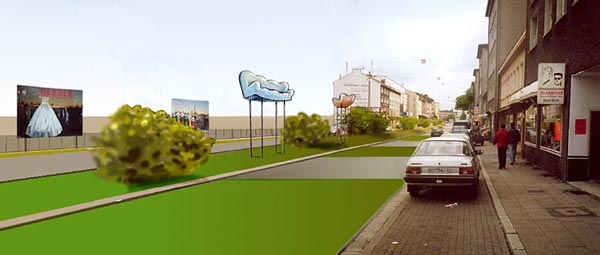 9: Bazar Friedrich-Ebert-Straße 50-62 mit grünem Mittelstreifen An der City-Grenze haben sich für eine Welt-Stadt